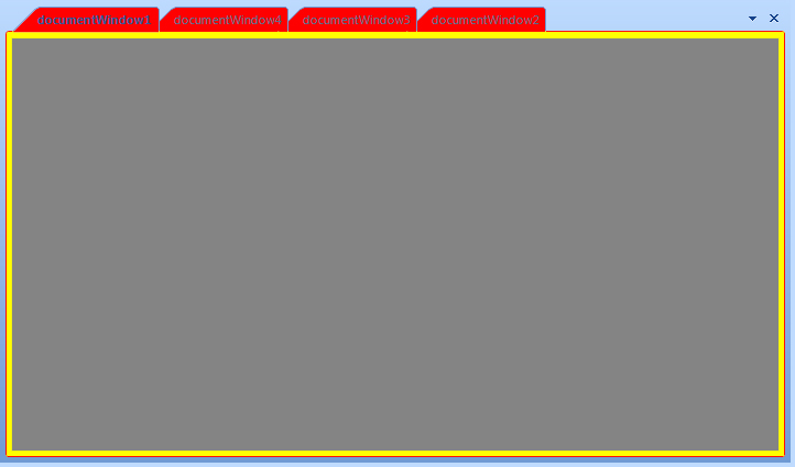documentTabStrip1.TabStripElement.BaseFillBorder.Visibility = Telerik.WinControls.ElementVisibility.Collapsed;However, if you perform docking operation, and take one of the document windows and dock it outside its document tab strip, new document tab strip will be created for this window and the border for it will appear. To handle this case, you can subscribe to the DockTabStripNeeded event of RadDock, create your own instance of DocumentTabStrip, remove its border and assign it to the Strip property provided in the event args. Follows the whole implementation of the described functionality: