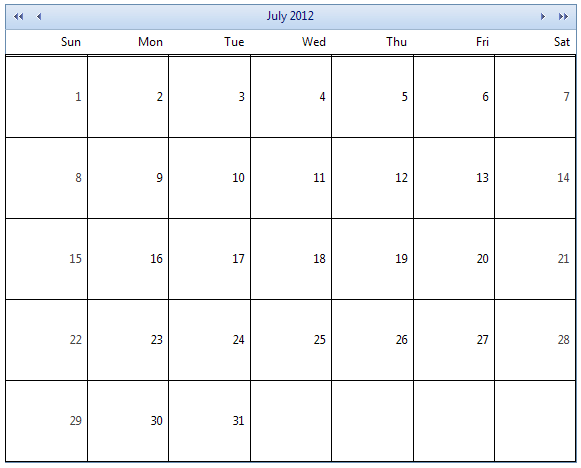 <style type="text/css"> .RadCalendar_Default .rcMain .rcMainTable { border-collapse:collapse; } .RadCalendar_Default .rcMain .rcMainTable th { border-bottom-color:#000; } .RadCalendar_Default .rcMain .rcMainTable th.rcViewSel { border-bottom-color:#c5c5c5; } .RadCalendar_Default .rcMain .rcMainTable .rcRow td { border-style: solid; border-color: #000; }</style>Please have in mind that you should replace Default with your skin name.
