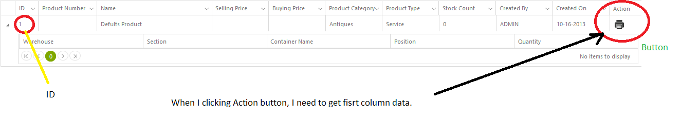 I m create a kendo Excel grid with hierarchy. And last column I added a action button.