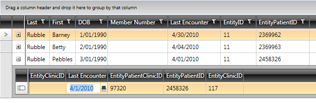 I have a master/detail hierarchy and am wondering how to get a reference to the parent in the RowEditEnded event (see attached picture). The RadGridView.CurrentItem and SelectedItem is the first row (Barney Rubble) even though I'm editing the detail on the third row (Pebbles).