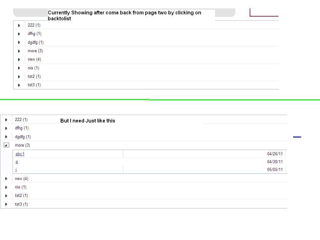 I have a grid on page1 and it contain the record that can expend. After expend we can redirect on the page2 and on page2 we have a link button "Back to list". I want to ask that is it possible that can i get it back in expended mode when i came to from page2 ?