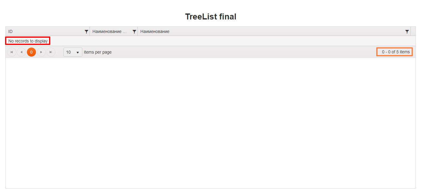 In the web it we can see, that there are 5 items (that's true!), but "No records to display"