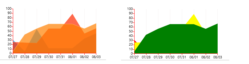 I created an Area chart with our own palette colors. Now if one series data point went under the other series data points. I couldn't see the shadow kind of effect under the higher values series.