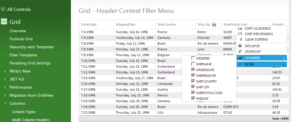 I am using Telerik Grid in my project.I set the "EnableHeaderContextMenu="true" " to Hide/Show the Grid Columns.My requirement is how to get the Hide Columns information from Javascript. Please find the attachment for your reference ,i hide the 2 of clolumns from list ,my requirement is how to get "ORDERID" and "SHIPNAME" columns?