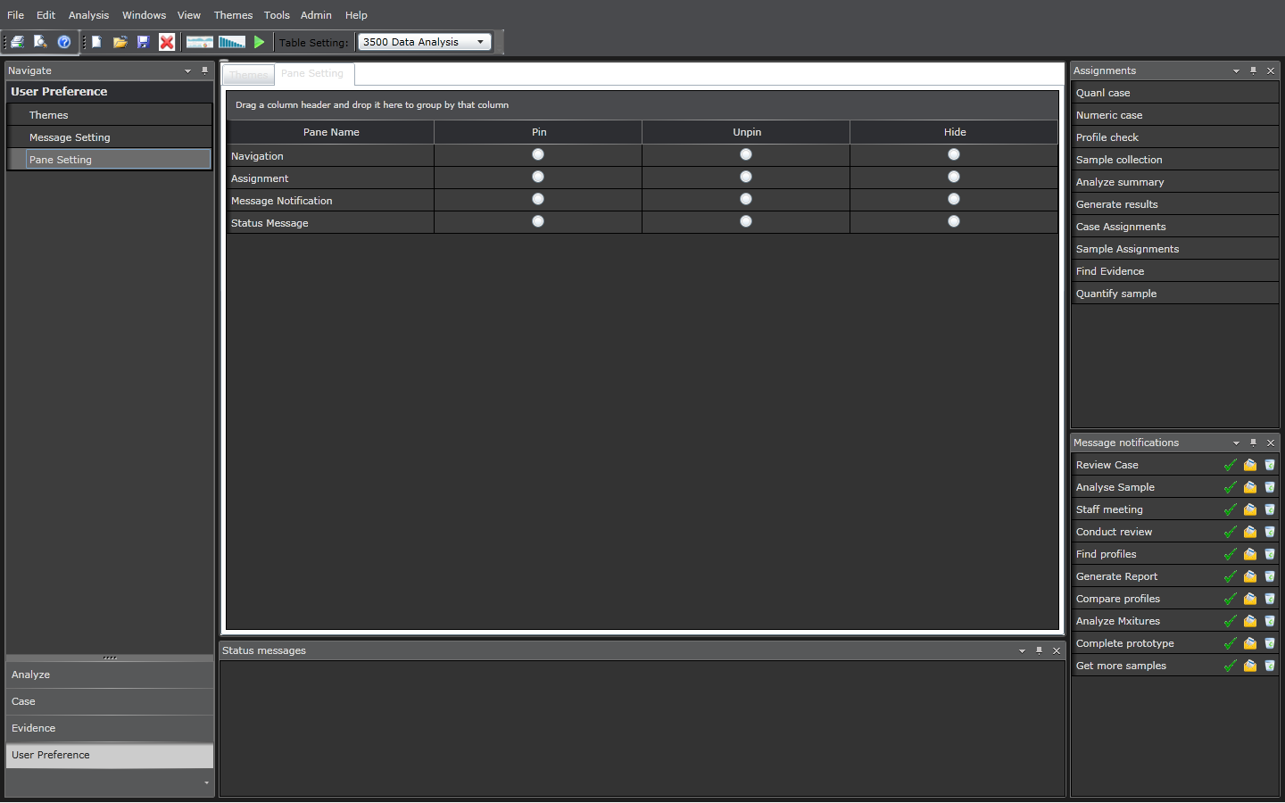 public partial class UPPaneSettingView : UserControl { public UPPaneSettingView() { UPPaneSettingViewModel model = new UPPaneSettingViewModel(); this.DataContext = model; InitializeComponent(); // data binding RegionContext.GetObservableContext(this).PropertyChanged += (s, e) => model.tempProperty = RegionContext.GetObservableContext(this).Value as string; } private void editBtn_Checked(object sender, RoutedEventArgs e) { string _GroupName = ((System.Windows.Controls.RadioButton)sender).GroupName.ToString(); string _PaneProperty = ((System.Windows.Controls.RadioButton)sender).Tag.ToString(); IRegionManager regionManager = ServiceLocator.Current.GetInstance<IRegionManager>(); // MainPageview is having the RadDocking and I am passing the RadPane names here EverestMainApplication.MainPageView mainPageView = (EverestMainApplication.MainPageView)EverestFunctions.GetView(ViewNames.MainPageView, regionManager.Regions[Regions.LoginScreenRegion]); switch (_GroupName) { case "GroupNavigate": switch (_PaneProperty) { case "UnPin": mainPageView.PaneNavigationCommonModulRegion.IsPinned = false; break; case "Pin": mainPageView.PaneNavigationCommonModulRegion.IsPinned = true; break; } break; case "GroupAssignment": switch (_PaneProperty) { case "UnPin": mainPageView.PaneAssignmentRegion.IsPinned = false; break; case "Pin": if (mainPageView.PaneAssignmentRegion.IsHidden == true) { mainPageView.PaneAssignmentRegion.IsHidden = false; } mainPageView.PaneAssignmentRegion.IsPinned = true; break; case "Hide": mainPageView.PaneAssignmentRegion.IsHidden = true; break; } break; case "GroupMessageNotification": switch (_PaneProperty) { case "UnPin": mainPageView.PaneMessageNotificationRegion.IsPinned = false; break; case "Pin": if (mainPageView.PaneAssignmentRegion.IsHidden == true) { mainPageView.PaneAssignmentRegion.IsHidden = false; } mainPageView.PaneMessageNotificationRegion.IsPinned = true; break; case "Hide": mainPageView.PaneMessageNotificationRegion.IsHidden = true; break; } break; case "GroupStatusMessage": switch (_PaneProperty) { case "UnPin": mainPageView.PaneStatusMessageRegion.IsPinned = false; break; case "Pin": if (mainPageView.PaneAssignmentRegion.IsHidden == true) { mainPageView.PaneAssignmentRegion.IsHidden = false; } mainPageView.PaneStatusMessageRegion.IsPinned = true; break; case "Hide": mainPageView.PaneStatusMessageRegion.IsHidden = true; break; } break; }; } }Requirement : I need to replace Property names to Panes names and implement the same logic. Means, first column woukd be of panes and other column would be having the properties (pin,unpin, hide). For your reference I am attaching the image (UI-Setting2.png).