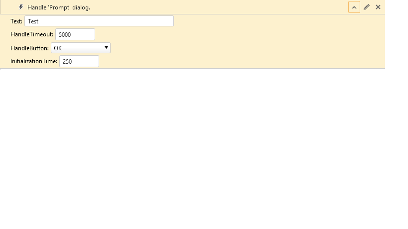 I added a step to handle this dialog but when the script is running Test Studio is unable to enter provided value and click on the button.
