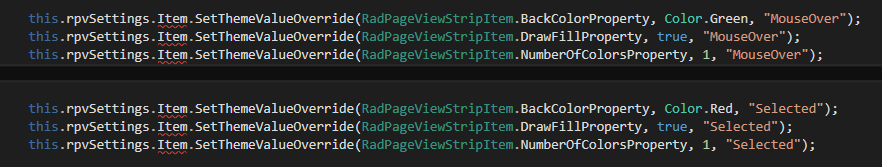 this.radPageViewPage1.Item.SetThemeValueOverride(RadPageViewStripItem.DrawFillProperty, true, "Selected");