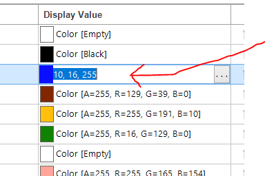 In addition to this solution, you can hide the RGB text from the cell itself while it is not in edit mode. This can be achieved by using the CellFormatting event and hiding the cell's text as follows: