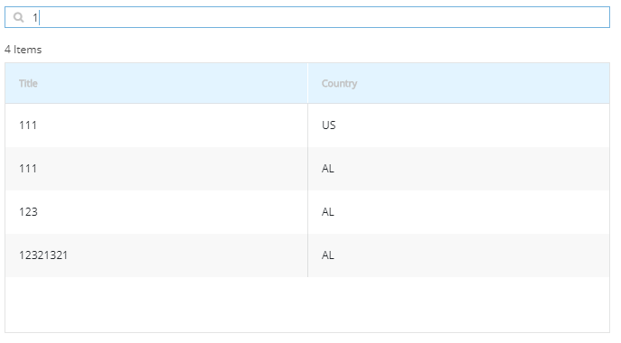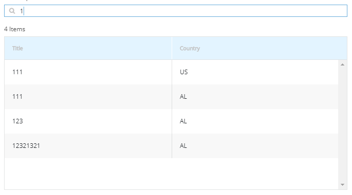 I found only this solution: <input type="text" #filterInput placeholder="Search" (keyup)="itemsFilter(filterInput.value)" /><kendo-grid class="grid-customized-border" [style.height.px]="300" scrollable="scrollable" [data]="gridView" [sortable]="{ allowUnsort: allowUnsort, mode: 'single' }" [sort]="sort" (sortChange)="sortChange($event)" [selectable]="true" [kendoGridSelectBy]="'id'" [selectedKeys]="selectedRows" #grid>itemsFilter(value) { if (value) { this.gridView.data = this.gridView.data(item => { return item.title.toLowerCase().indexOf(value.toLowerCase()) === 0 }); } setTimeout(() => this.toggleScroll());}public toggleScroll() { if (this.grid) { let el = this.grid.nativeElement, content = el.querySelectorAll('.k-grid-content')[0], table = el.querySelectorAll('.k-grid-table-wrap')[0], header = el.querySelectorAll('.k-grid-header')[0]; if (table && content) { if (table.offsetHeight < content.offsetHeight) { content.style.cssText = 'overflow-y: auto'; header.style.cssText = 'padding: 0'; } else { header.style.cssText = 'padding: 0 16px 0 0'; } } }}