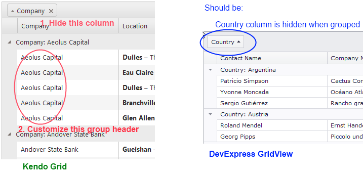 See attached pic and here: http://demos.devexpress.com/aspxgridviewdemos/GroupingSorting/Grouping.aspx
