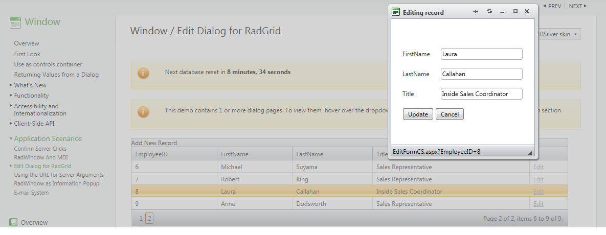 ASP.NET Grid Demo - Application Scenarios - Window Editing