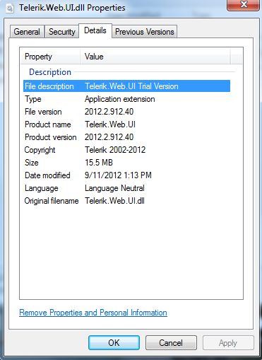 I have a old project (from 2010) which is having "Telerik.Web.UI.dll" in the bin folder. Is there any way to identify if that dll is from licensed version of product or it is a trial version ?