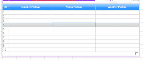 I have formatted it (w = 630, h = 300) with 4 columns and 10 rows (width of columns 30,200,200,200, horrizonscrollbar = alwayhide)