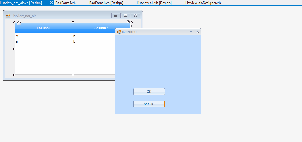 If you notice in my gif image, there are 2 buttons on the ribbon tab to call 2 windows forms containing radlistview (with theme) and they work differently.