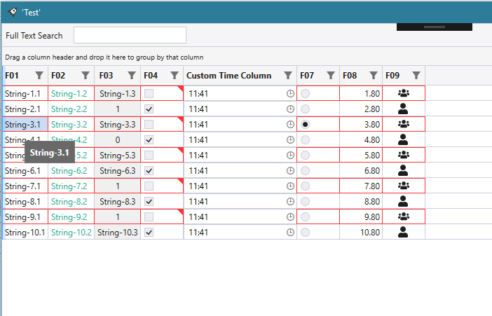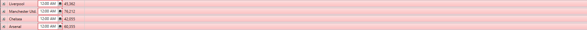 I have defined a custom TimePickerColum. In my RadGridView I have Validation which when something is not valid shows the row as red and marks the cell which is invalid with a red marker which shows a tooltip when hoovered over.
