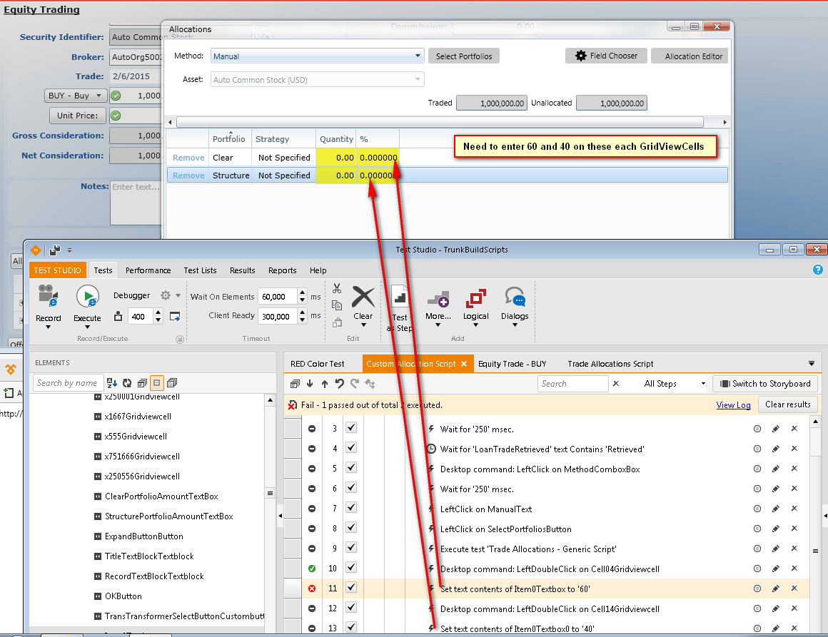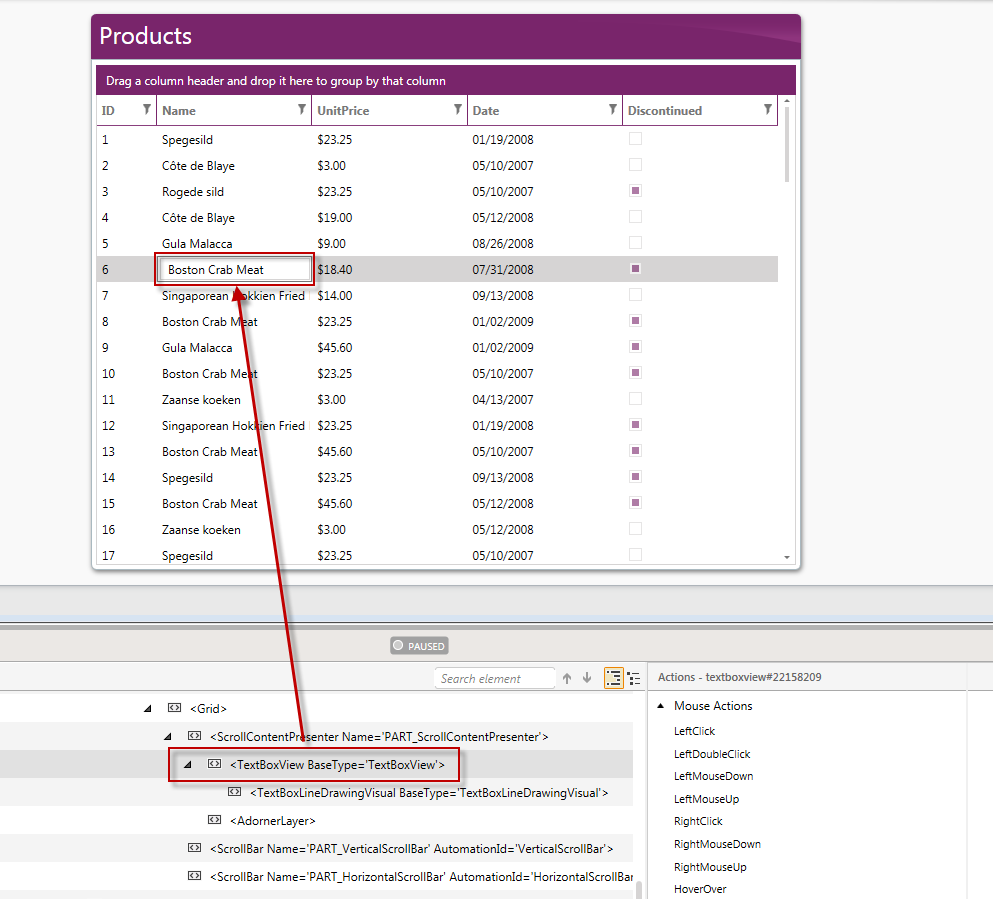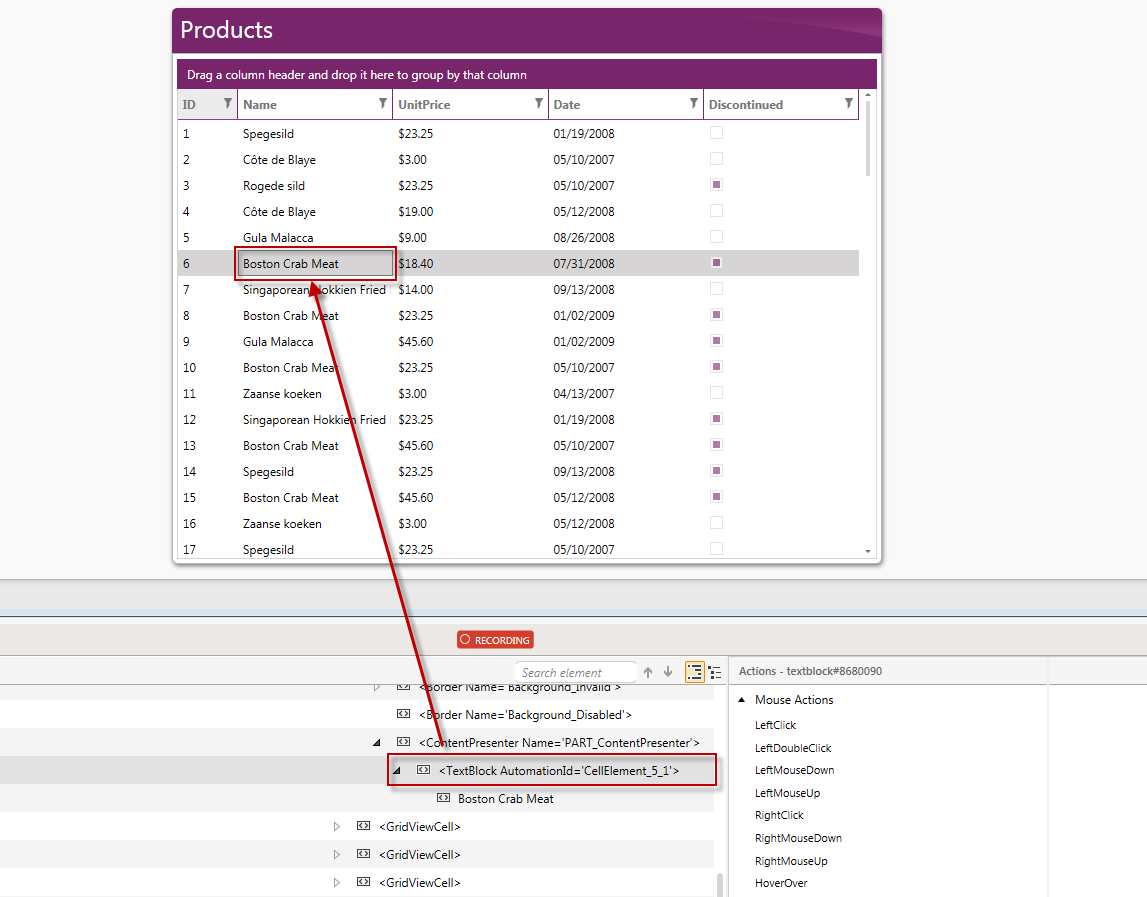[TestMethod]public void SilverlightDataGrid(){ Manager.Settings.Web.EnableSilverlight = true; Manager.LaunchNewBrowser(); ActiveBrowser.NavigateTo("http://demos.telerik.com/silverlight/#GridView/DataSources"); // Wait for the app to finish loading System.Threading.Thread.Sleep(5000); SilverlightApp sl_app = ActiveBrowser.SilverlightApps()[0]; RadGridView rgv = sl_app.Find.ByAutomationId<RadGridView>("RadGridView1"); IList<GridViewCell> gridCells = rgv.Rows[0].Cells; foreach (GridViewCell cell in gridCells) { cell.User.Click(); Manager.Desktop.KeyBoard.TypeText("ABC 123"); System.Threading.Thread.Sleep(500); } System.Threading.Thread.Sleep(5000);}@Madhu, this is answering your question as well, if you continue experiencing issues, please submit your own ticket/thread instead of interjecting to an existing one.