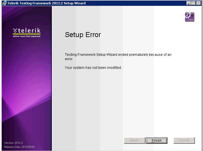 I want to run my tests on XP OS with IE6, I have a machine which has been installed IE8 and telerik testing framework, after I uninstalled IE8, I couldn't uninstall the testing framework.