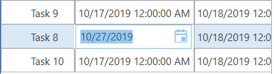 Thank you for giving me the above solution, but your sample works only for CellTemplate not CellEditTemplate. My start and end dates are in edit mode as you see below: