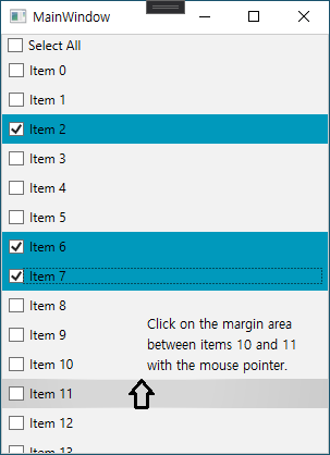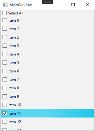 Thank you for the provided images. The reason for the undesired behavior with the selection is that the CheckBox does not stretch to the whole RadListBox item. To achieve this, you need to remove the default padding for the Items and transfer it to the CheckBox. As for the missing scrollbar, this is because the StackPanel has an infinite height. Please excuse me for overlooking this. This issue can be resolved by replacing the StackPanel with a Grid panel. For your convenience, I've gone ahead and applied both these modifications to the attached project. Please have a look and let me know if it provides the desired result.