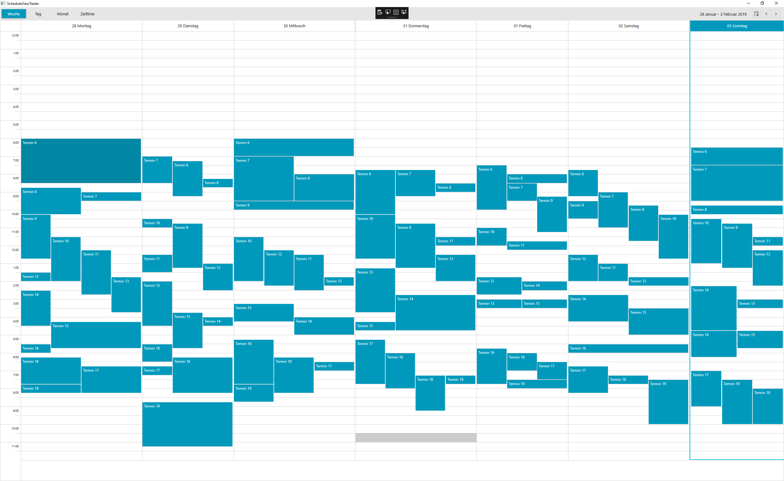 I like to have the width of the WeekView always equal to the width of the current parrent. But as soon as I have more Appointments ScheduleView is displaying a horizontal scrollbar and I have to scroll horizontally to see the last days of the week. (See attached Screens)