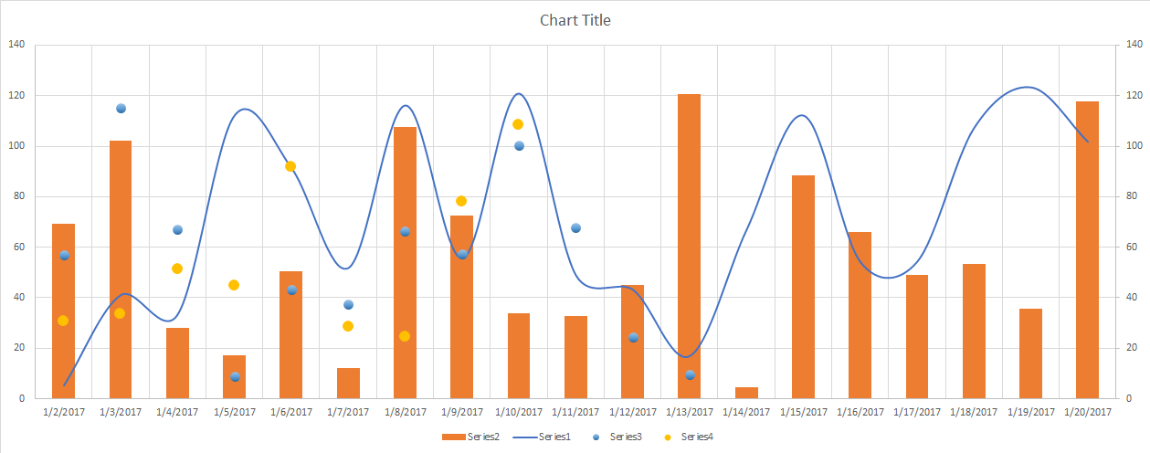 We have a requirement which is to put bar charts, area charts, line charts together with several scatter charts in one chart. How can we do this?