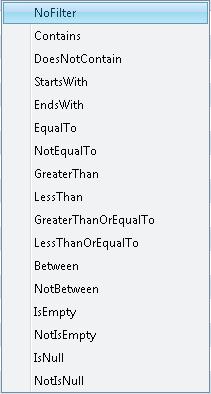 public Dictionary<string, object> GetAllUsersGrid(int startRowIndex, int maximumRows, List<GridSortExpression> sortExpression, List<GridFilterExpression> filterExpression)My problem is I don't want to support all of the available GridSortExpressions. How do I prevent some of them from appearing in the user interface?