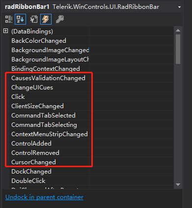 I want to rewrite the close event of radRibbonBar to help me achieve some other functions, but I can’t find the option of close event in the event area of radRibbonBar. I try to double-click the close event button of radRibbonBar, but it doesn’t work. I would like to ask the closing of this control. According to how to set from the event, or other ways to achieve the solution, thank you.