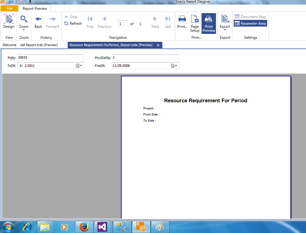 The described behavior might be due to the specific expressions used in the report. Please share what are the expressions used the text boxes corresponding to Project, From Date and To Date, so we can advise further.