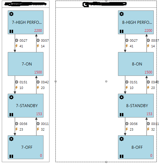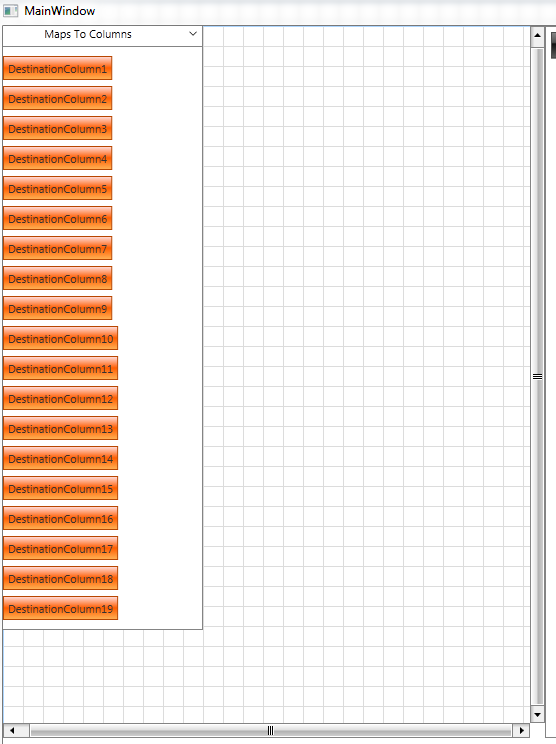 fakeItem.Position = new Point(0, 30 * i);fakeItem.Position = new Point(300, 30 * i);Also I'd like to point out that when you're using RadDiagramContainerShape with ItemsSource you won't be able to drag an item in or out of the container(that's why in my previous example I used the Items property). If you want to use ItemsSouce you'd better also use business objects for your containers:
