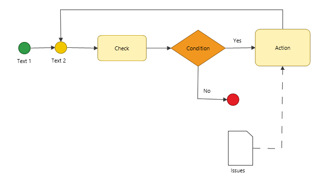 According to Wikipedia, Business Process Model Notation (BPMN) is a graphical representation for specifying business processes in a business process model. I can see the shapes of the example are looking very much like the shapes from our default ToolBox. In combination with our SettingsPane you can easily create the same diagram.