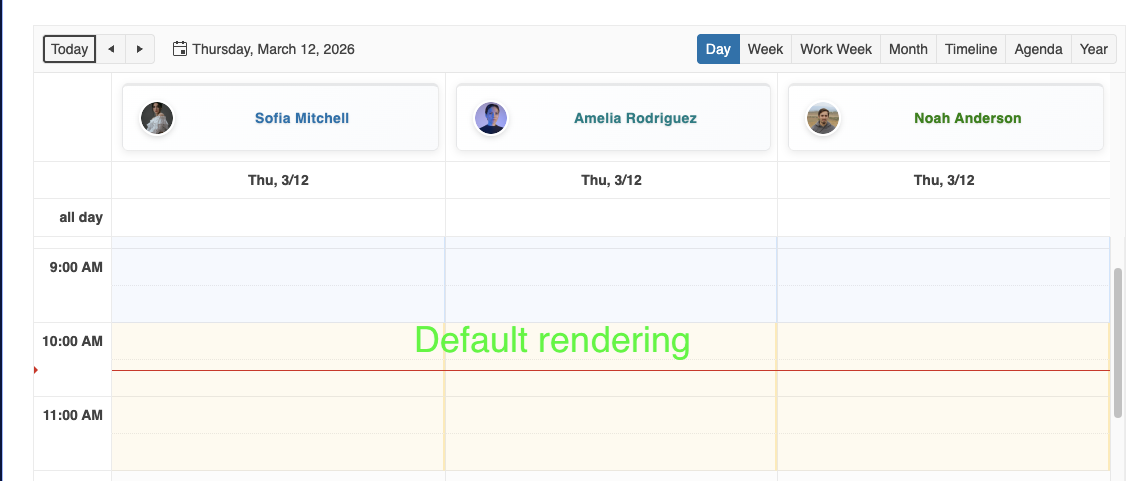The Scheduler's red "Current Time" marker line will render at 10:00 AM.