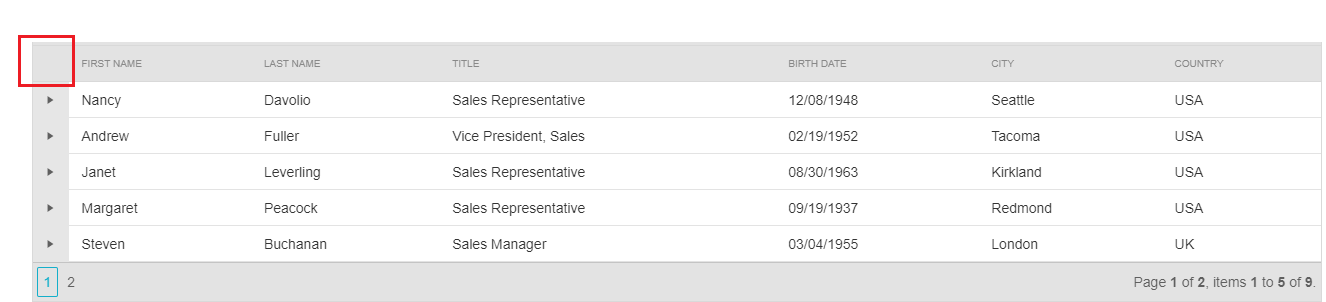 There is no text in the header cell of the Expand/Collapse column, which is causing the error you get.