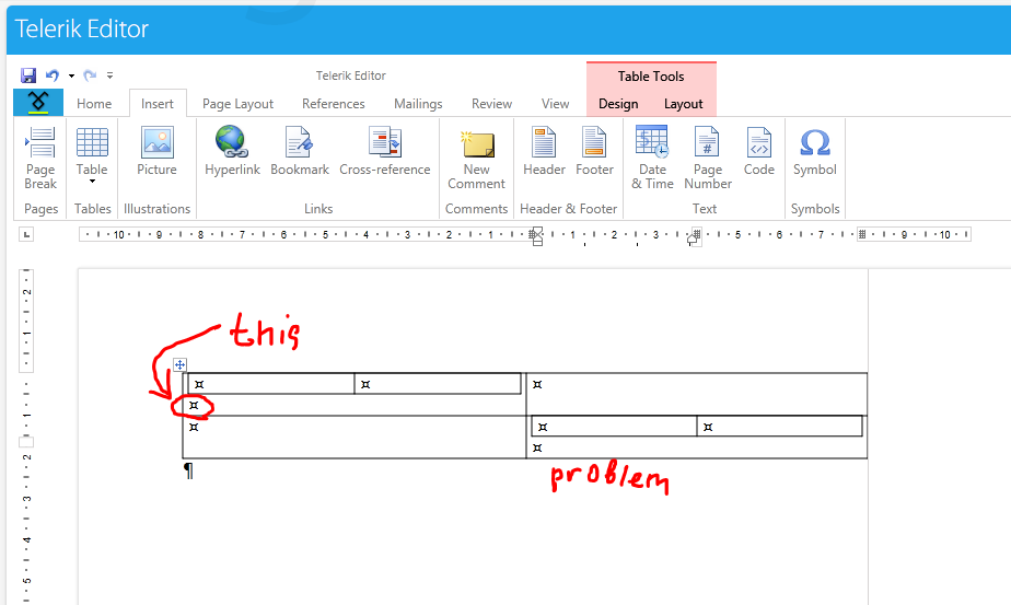 I put a table programmatically, without paragraphs. However, the external cell creates a new line.