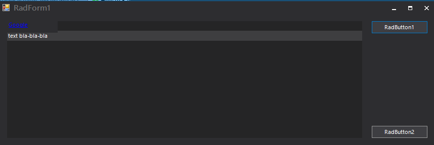 radListView1.Items.Add("<html>Text <a href=\"Test\">Link<a/>");Should you have any other questions do not hesitate to ask.