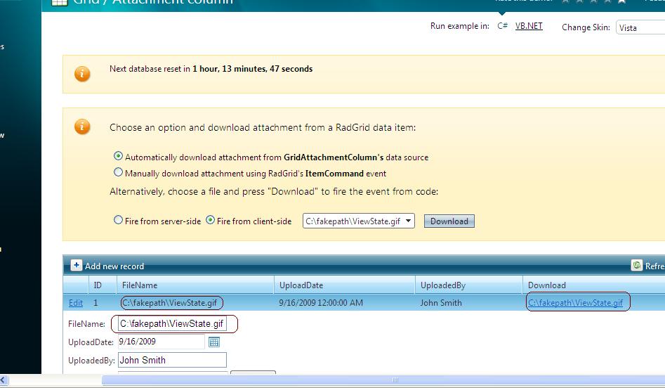 My question: Is it possible to remove the path name from Gridattachment column as well as in Upload window. I mean I do not want to see C:\fakepath\ViewState.gif in upload window as well as in Gridattachment column in Radgrid. I would like to see just ViewState.gif