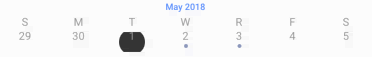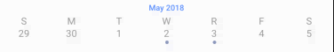 I have a RadCalendar in Week view mode that I'm using to allow users to jump to dates in an events list. The calendar displays indicators for dates that have events in the list. On iOS, if a user taps a date that does not have an indicator, a black highlight appears (see screenshot #1). Tapping a date with an indicator, does not show a highlight (see screenshot #2). On Android, there is no highlight no matter which dates the user taps on (i.e. always looks like screenshot #2).