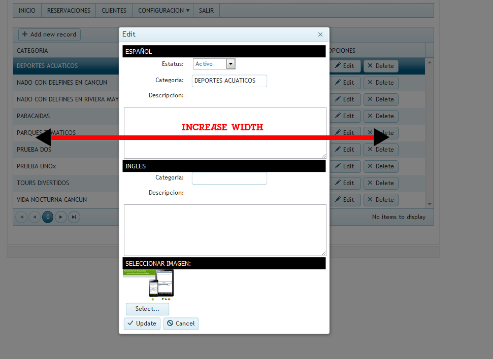 I need to increase the size (width of my editing PopUp Window)