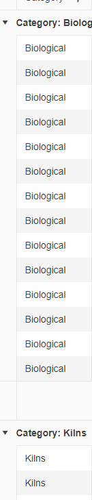 So I'm hoping to be able to pull that category value, "Biological" or "Kiln", when generating the group footer which I do by using the code here.