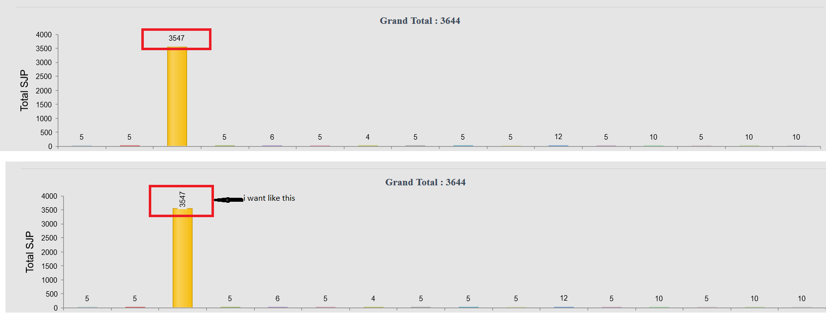 we are using radhtml chart, in that we bind Y axis, Y axis and color for each bars, in that we want to rotate the XAxis bar value horizontal to vertical, here i attach screenshot of current and what we want, is there any properties to change this? i am not asking for LabelsAppearance or legend text.