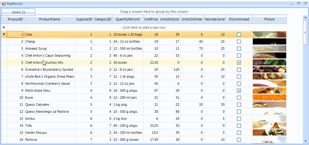 I have to select a row in a winform radGridView after I made an update on that row in a sorted column and use the value of a cell in an ID column (column 0) as an index.