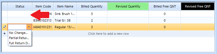 05.clm_status.DisplayMember = "status_display"06.clm_status.ValueMember = "status_value"07. 08. 09.'>>>>>Populate Radgridview "dgv_return". Data source "due_bill_detail" table10.For Each row As DataRow In ds.Tables("due_bill_detail").Rows11. 12.Dim rowInfo As New GridViewDataRowInfo(dgv_return.MasterView)13. 14.rowInfo.Cells(dgv_return.Columns("status").Index).Value = "No Change" 'This is the combobox column. Its not working15.rowInfo.Cells(dgv_return.Columns("item_code").Index).Value = row("item_code") 'This is working fine16.rowInfo.Cells(dgv_return.Columns("item_name").Index).Value = row("item_name") 'This is working fine17.dgv_return.Rows.Add(rowInfo)18.Next row