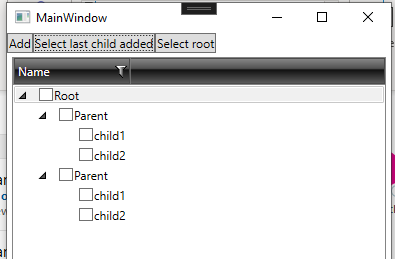 <Button x:Name="button2" Height="20" Command="{Binding CmdSelectLastItemAdded}">Select last child added</Button>