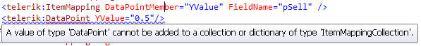 <telerik:RadChart x:Name="chartBuySell" Width="100" Height="15" x:FieldModifier="public"> <telerik:RadChart.SeriesMappings> <!-- Series 1 --> <telerik:SeriesMapping LegendLabel="Series 1"> <!-- ItemsSource="{Binding pSell}" --> <telerik:SeriesMapping.SeriesDefinition> <telerik:HorizontalStackedBar100SeriesDefinition ShowItemLabels="True"> <telerik:HorizontalStackedBar100SeriesDefinition.Appearance> <telerik:SeriesAppearanceSettings Stroke="Firebrick" StrokeThickness="1"> <telerik:SeriesAppearanceSettings.Fill> <LinearGradientBrush StartPoint="0,0" EndPoint="0,1"> <GradientStop Offset="0" Color="Red" /> <GradientStop Offset="1" Color="DarkRed" /> </LinearGradientBrush> </telerik:SeriesAppearanceSettings.Fill> </telerik:SeriesAppearanceSettings> </telerik:HorizontalStackedBar100SeriesDefinition.Appearance> </telerik:HorizontalStackedBar100SeriesDefinition> </telerik:SeriesMapping.SeriesDefinition> <telerik:ItemMapping DataPointMember="YValue" FieldName="pSell" />