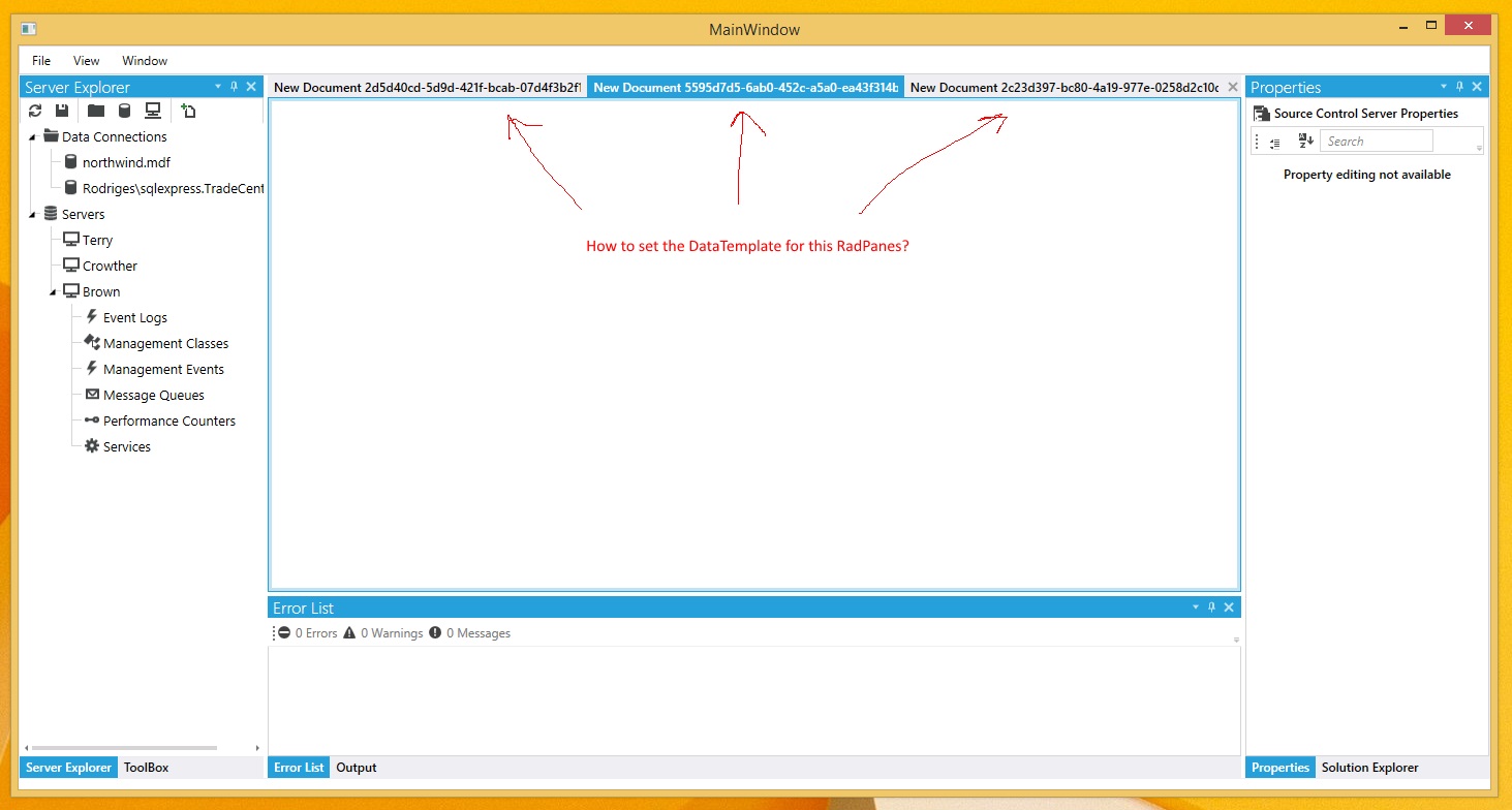What I need is an example of how to set the DataTemplates for my RadPanes. Is there a clean way to set the DataTemplates and the DataTemplateSelector on XAML?