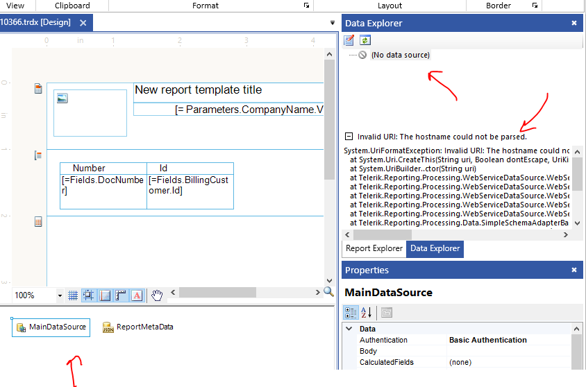We are getting the following error in the report web designer when the design-time values are not set.