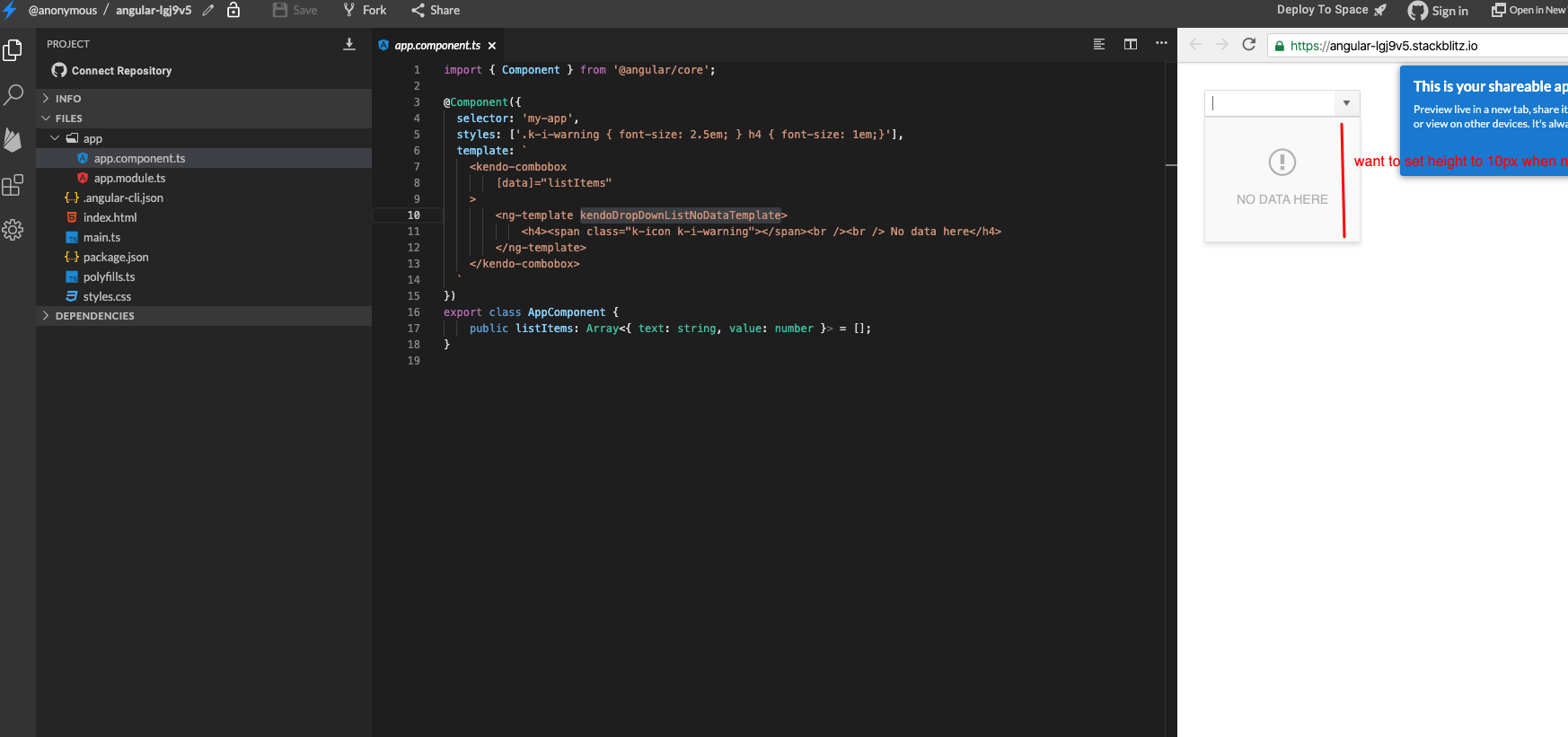 Using the provided CSS styles, I am afraid that 10px height would not fit the content provided in the no data template.