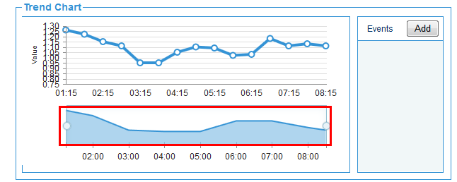 @(Html.Kendo().StockChart<Nalco.enVision.Web.Areas.ServiceModule.Models.SensorChartModel>() .Name("stockChart") //.Legend(true) //.Title(Model.ChartTitle) .DataSource(ds => ds .Read(read => read.Action("GetChartData", "Charts")) .ServerOperation(true) ) .DateField("MeasureDate") .CategoryAxis(axis => axis.Name("dateAxis") // .Labels(l => l.Rotation(90)) //.Title(Model.XAxisTitle) .Title(t => t.Font("10px Arial")) ) .ValueAxis(axis => axis.Numeric("valueAxis") .Labels(l => l.Format("{0:n}")) .Title(Model.YAxisTitle) .Title(t => t.Font("10px Arial")) ) .Series(series => { series.Line(s => s.Value).Axis("valueAxis") .Color("#3493D5") .Tooltip(tooltip => tooltip.Format("{0:n}")) .Tooltip(tooltip => tooltip.Template("Date:#= kendo.toString(category,'G') # <br/>Value: #= value #")); } ) .Navigator(nav => nav //.DataSource(ds => ds.Read(read => read.Action("GetChartData", "Charts"))) //.DateField("MeasureDate") .Series(series => { series.Area(s => s.Value) .Color("#3493D5"); }) ) .Events(e => e.SelectEnd("onSelectEnd")) .HtmlAttributes(new { style = "height:" + Model.Height + "px;width:" + Model.Width + "px;" }) )