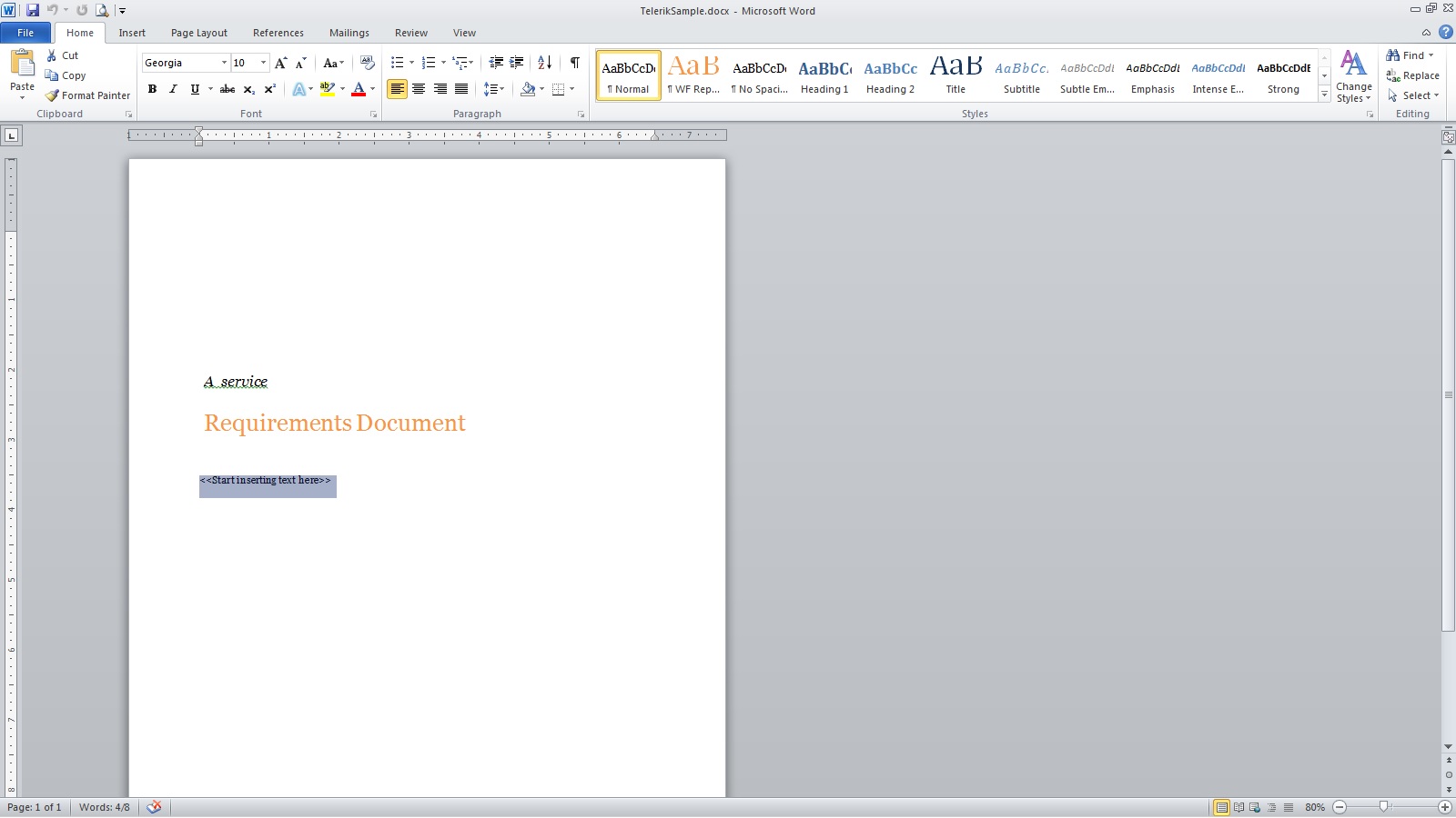 I am starting with an existing document, which is attached, and trying to figure out how to correctly set the position so I can start adding text at a certain point in the document. The key is how do you find that point so the RadFlowDocumentEditor can begin adding and creating tables in the document. I am not trying to do a mail merge. All I want to do is get a certain position within the document to begin adding text. Is there something special you need to do inside of the word document itself? Here is the code I used to try and hopefully set the position, but it adds text to the top of the document and wipes out the existing text. If you could provide me a code snippet or some guidance, I would appreciate it.