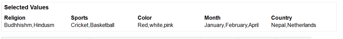 but expands according to the data we selected in the filter, and this table shows the category of the selected values accordingly.