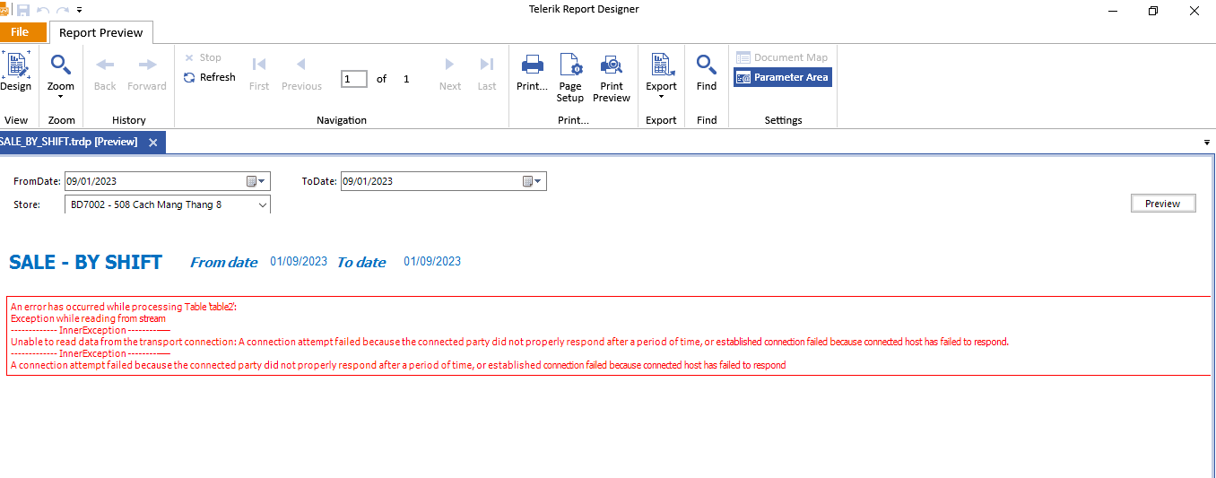 I have a question so need to consutant from you. When I run telerik report from Telerik report designer I already get error as attach picture. I guess it relate to timeout. Can you show me how to set it in telerik report designer? Thanks a lot.